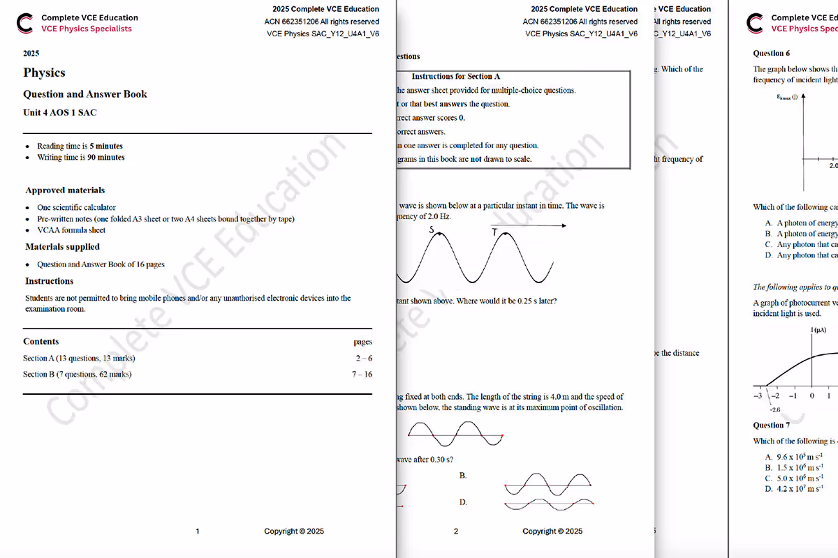 Each term ends with two to four weeks of SAC-preparation lessons, which cover the commonest and hardest SAC questions, including dreaded short answer and “Explain” questions. Mock SAC sittings, marking and feedback are also included for Y12 Core/Enrichment students.
