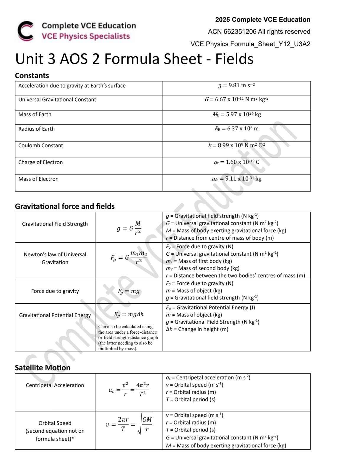 • VCE Physics Units 1-4